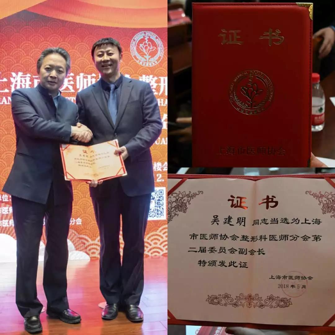 2018年5月上海市医师协会整形外科医师分会进行换届选举,吴建明教授再次连任上海市医师协会整形外科医师分会第二届委员会副会长。